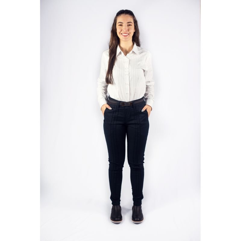 É uma peça chave e pode ser usada no dia-a-dia como uma calça simples. Fica bonita com qualquer tipo de calçado, contribuindo para o estilo versátil e bem estruturado.